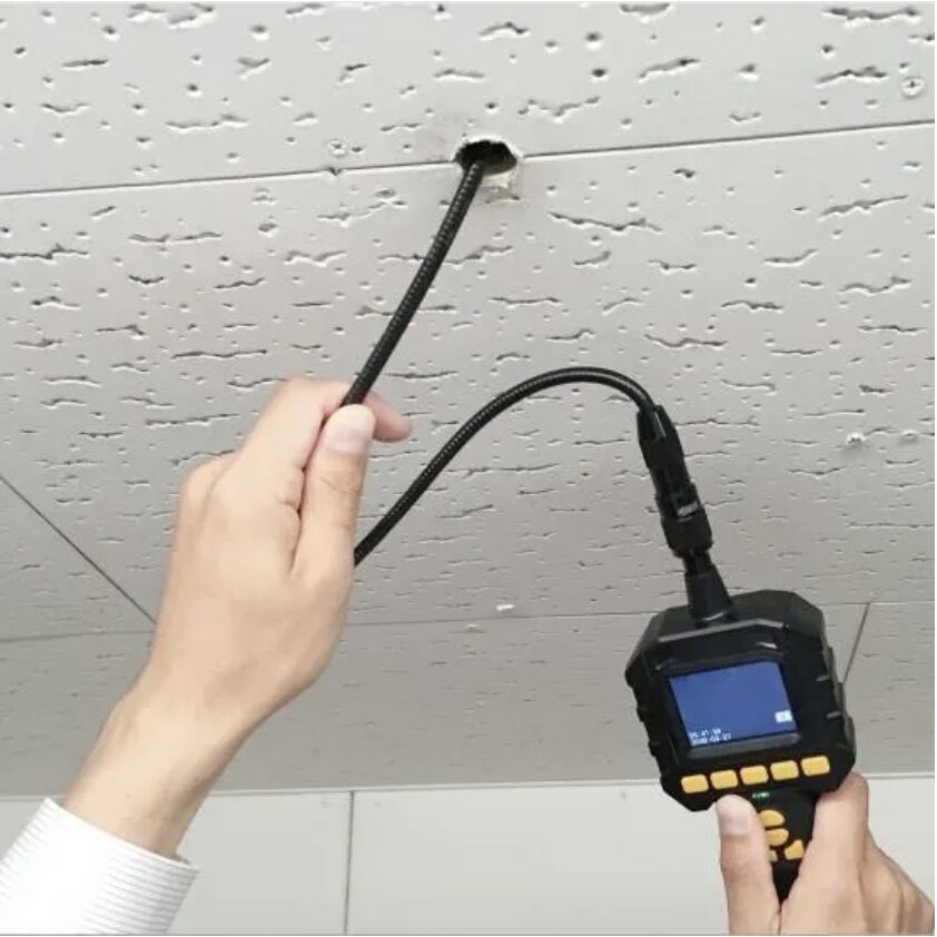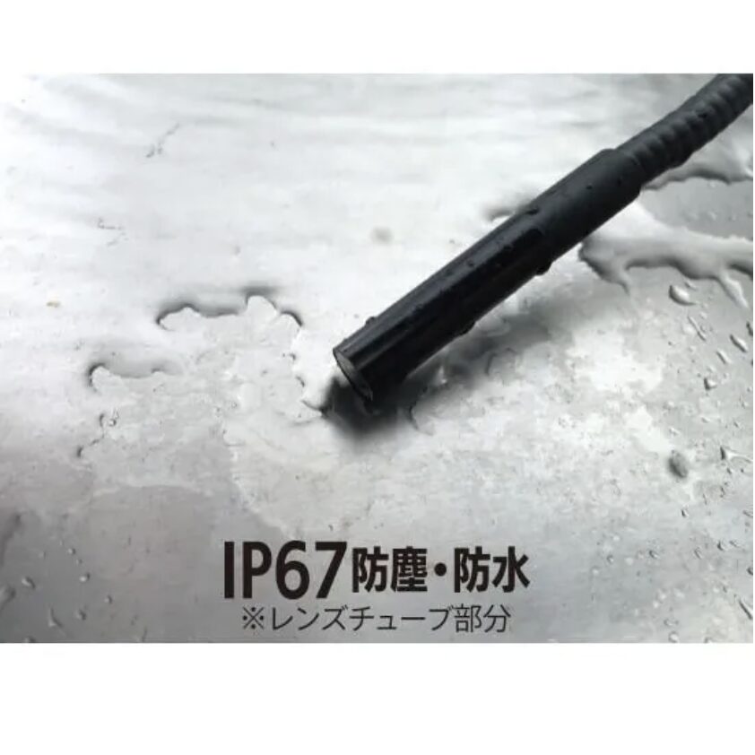 先端部はカメラと高輝度LEDを備えながら約8mmとコンパクトで、ハンドドリルで穿孔した12mm程度の穴にも挿入が可能。