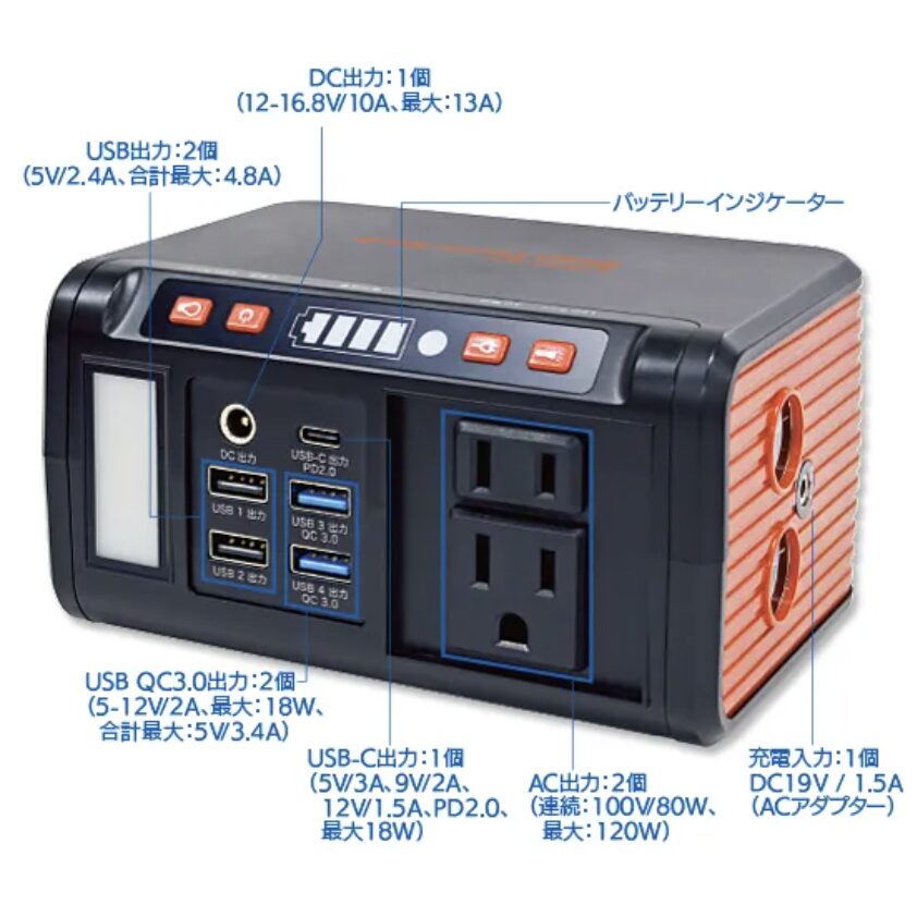 スマホ・ノートPCに充電&小型家電製品も使用可能な大容量のポータブル電源!