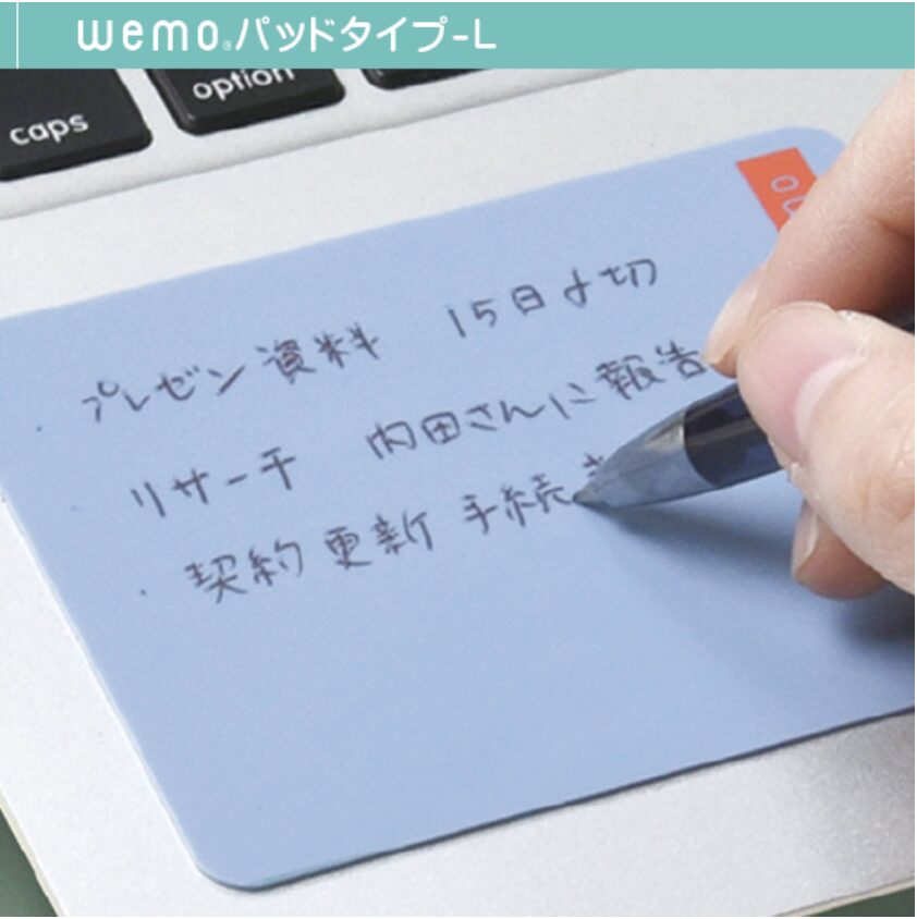 現場最前線で役立つウェアラブルメモ「wemo(ウェモ)」のパッドタイプ。